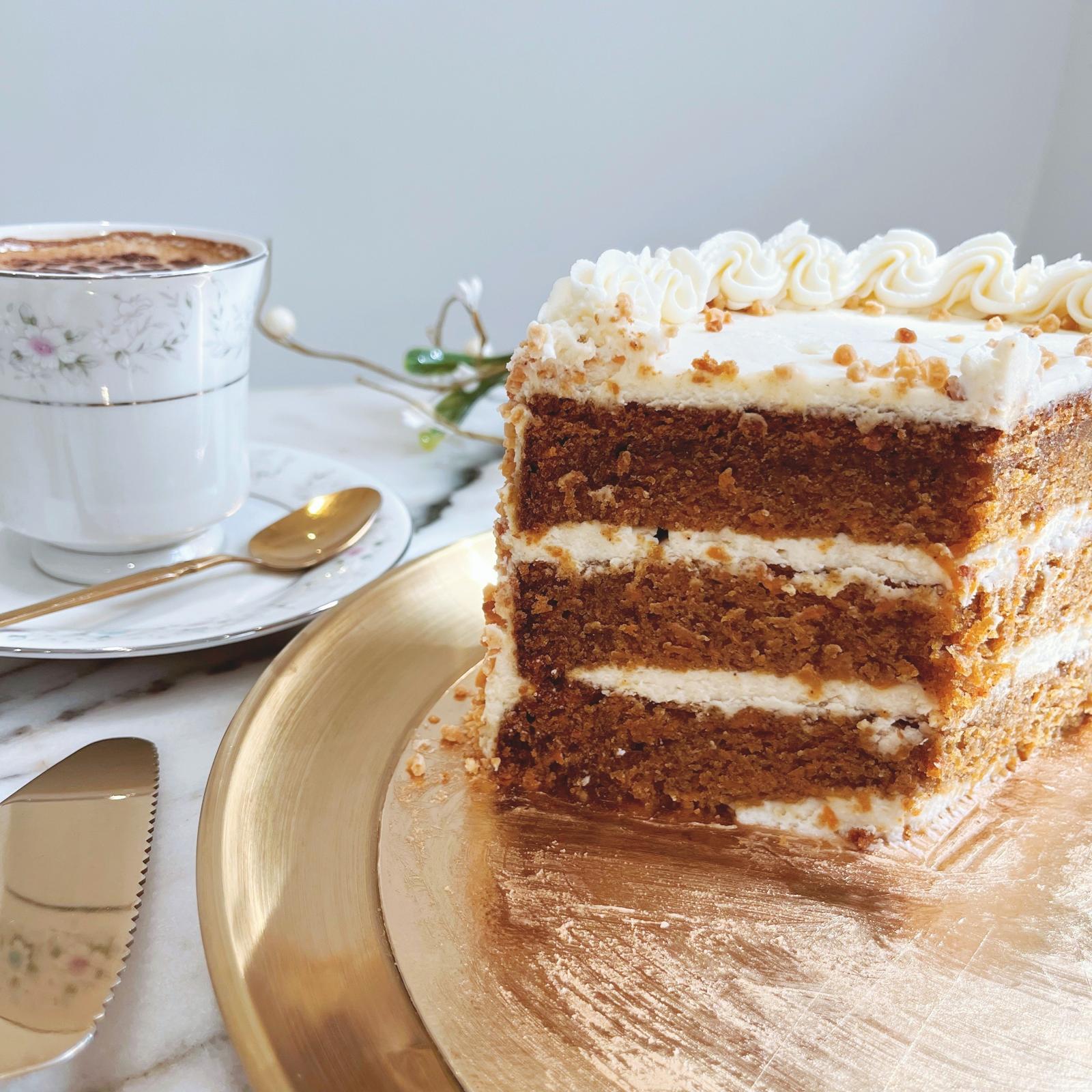 Elaborada artesanalmente con zanahorias frescas y los mejores ingredientes, esta tarta destaca por su textura húmeda perfectamente equilibrada con el dulzor natural de especias cálidas como la canela y la nuez moscada.