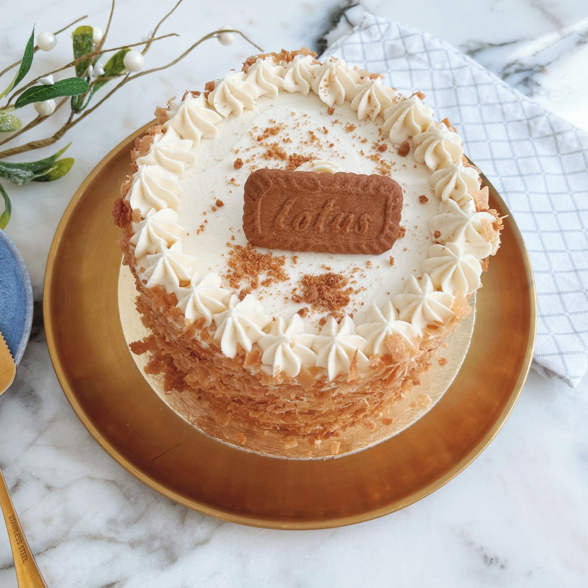Nuestra tarta de galleta Lotus está pensada para quienes buscan una experiencia diferente, especial y memorable. Su base está compuesta por un bizcocho esponjoso, ligero y húmedo, que se funde perfectamente con un relleno cremoso con matices especiados, característicos de la galleta Lotus. La mezcla es equilibrada y sorprendentemente adictiva: ni demasiado dulce ni demasiado intensa, pero con ese toque a caramelo tostado y canela que hace tan especial a esta galleta tan reconocida a nivel mundial.